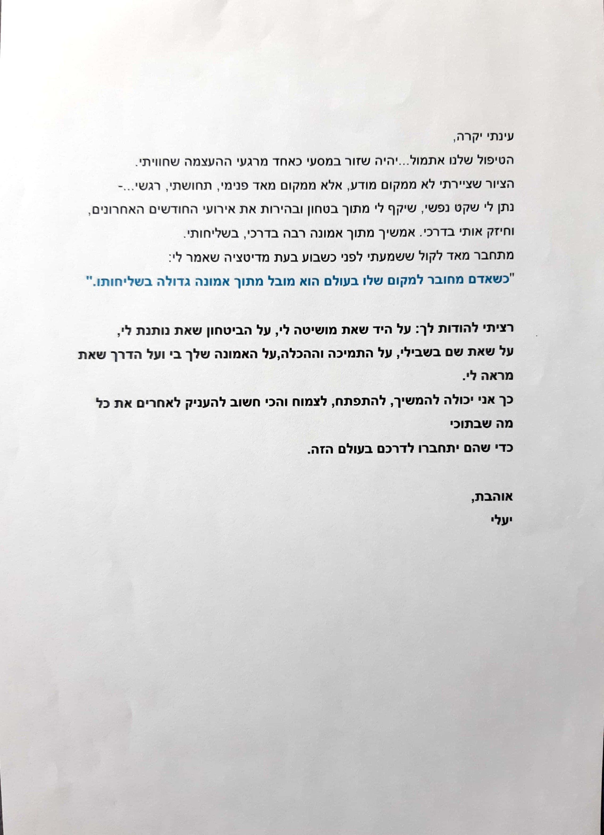 יחד נמצא את הדרך שתאפשר לך לעשות את השינוי הנחוץ ותוביל אותך לחיות את החיים כפי שאת רוצה ומדמיינת.